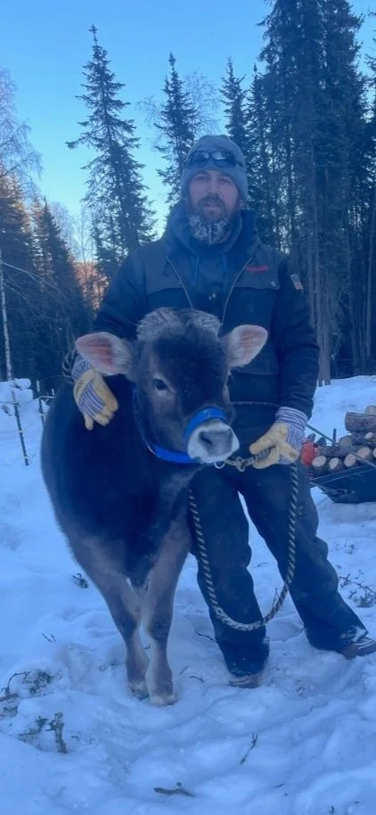 She came to us when she was 6. She was raised in the depths of an Alaskan village and was a loyal family cow her whole life. When we brought her to Fairbanks her transition was rough, but we’ve learned how to care for her and try our best to ease her into new situations slowly as she is very sensitive to changes.